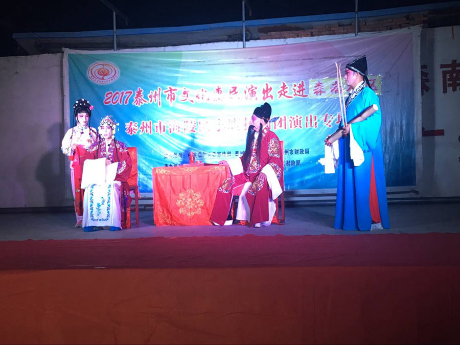 2017泰州市文化惠民演出走进海陵区城西街道森南社区,海陵区小鹰扬剧团专场演出,2017年7月14日晚上在海陵区城西街道森南社区百姓大舞台成功举办。本场演出剧目为传统扬剧整本戏《珍珠塔》。演员们精彩的演唱博得了观众的阵阵掌声。虽然气温很高,但是丝毫没有减弱戏迷们看扬剧的热情!演出很成功!感谢社区领导提供全方位的服务!