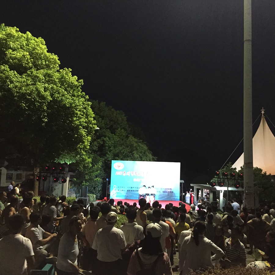 晚上6点多,苏陈镇影剧院前广场上就有很多群众自发前来观看,已经在小板凳上期待节目开始。晚上7点15分演出正式开始。来自泰州文艺广播的主持人曹晋和赵睿登场介绍了本次的惠民演出。由泰州市委宣传部、泰州市文广新局主办,海陵区委宣传部、海陵区文体旅新局承办的泰州市文化惠民演出,是市委市政府为民办实事的一项重要举措,自2016年开展以来,深受广大城乡社区居民的欢迎。今天,泰州广播艺术团带着各级领导的关怀,带着对广大父老乡亲的问候和祝愿,来到了美丽的苏陈镇,为苏陈的父老乡亲们带来精彩的演出。