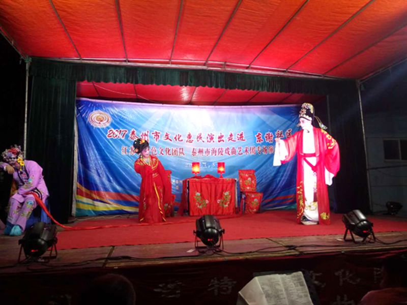 泰州市海陵区戏曲艺术团于2017年7月8日晚7时30分在凤凰街道东谢社区广场演出大型优秀传统扬剧——《真假新郎》。我团参演人员25人,由于东谢社区积极宣传,前来看戏的群众200余人。人民需要文化,文化需要人民,演出现场气氛热烈,观众掌声不断,演出圆满成功。这更加激起我们为老百姓排好戏、演好戏、唱好戏。把泰州市文化惠民演出活动锦上添花,更上一层楼。