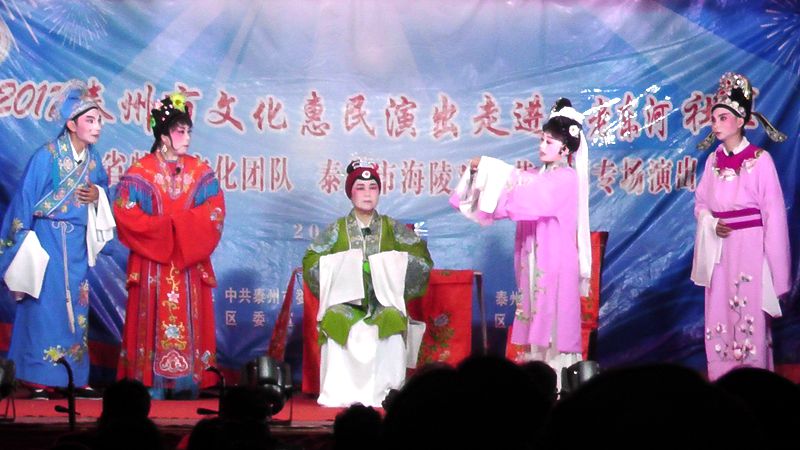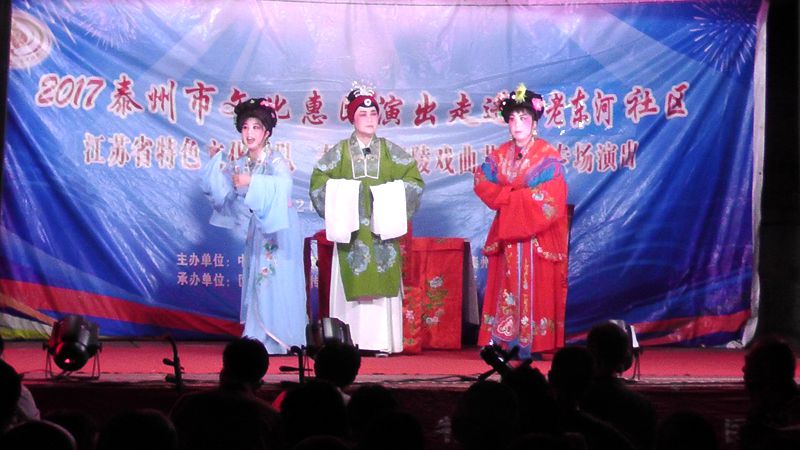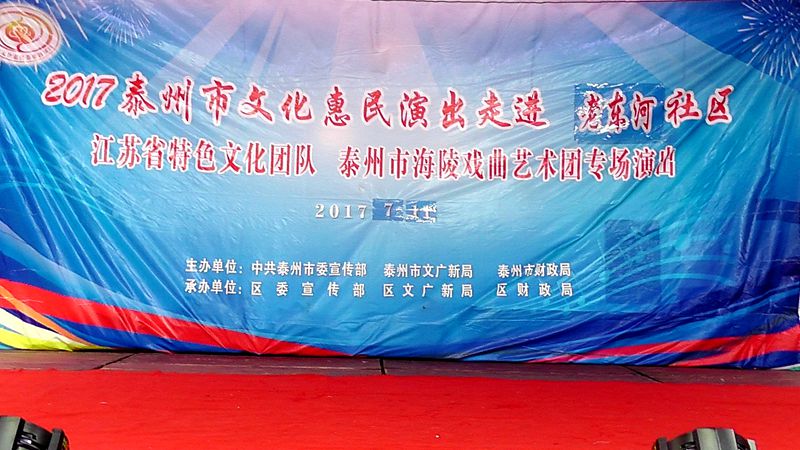 泰州市海陵戏曲艺术团于2017年7月11日晚7时30分在城东街道老东河社区广场演出大型优秀传统扬剧——《逃婚的新娘》。我团参演人员25人。由于老东河社区积极宣传,前来看戏的群众300余人,人民需要文化,文化需要人民,演出现场气氛热烈,观众掌声不断,演出圆满成功。这更加激起我们为老百姓排好戏、演好戏、唱好戏。把泰州市文化惠民演出活动锦上添花,更上一层楼。