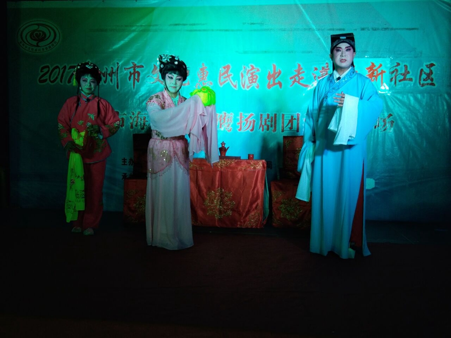 泰州市海陵区小鹰扬剧团于2017年7月15日晚上走进医药高新区明珠街道靳新社区进行文化惠民演出。虽然气温很高,丝毫没有减弱观众看扬剧的激情,经典的扬剧折子戏博得了观众的阵阵掌声。演出很成功!感谢社区领导提供全方位的服务!