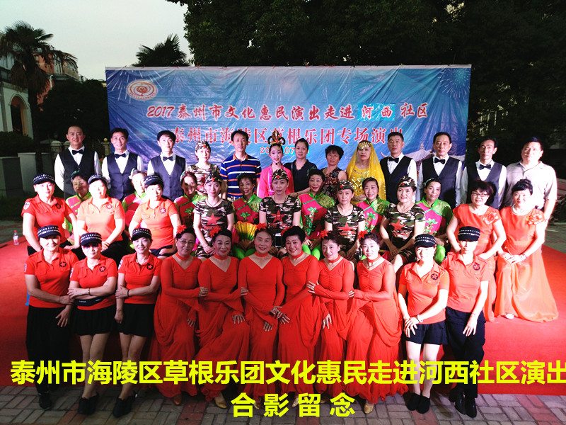 锦绣姜堰,人文姜堰,被誉为“民俗文化之大观,水乡风情之博览”的姜堰景色优美、人杰地灵。2017年7月19日泰州市海陵区草根乐团一行五十多人来到姜堰区河西社区的新世纪花园广场,为社区居民送来丰盛的文化大餐。