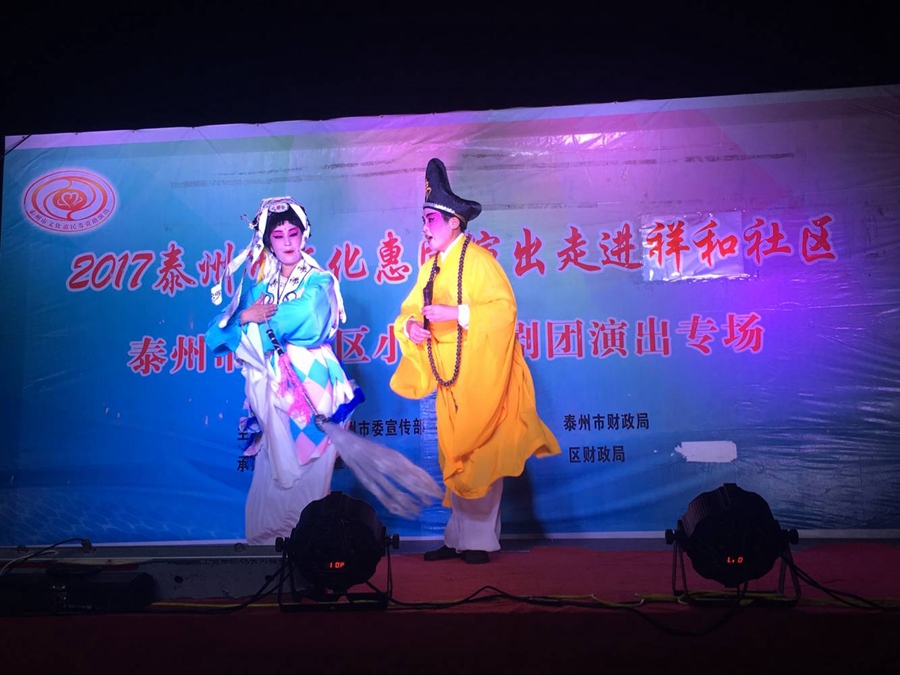 泰州市海陵区小鹰扬剧团于2017年7月31日晚上走进医药高新区寺巷街道祥和社区社区进行文化惠民演出。经典的扬剧折子戏博得了观众的阵阵掌声。演出结束后观众再三要求再加演几段,由此可见扬剧在泰州到处都有扬剧迷。演出很成功!感谢社区领导提供全方位的服务!
