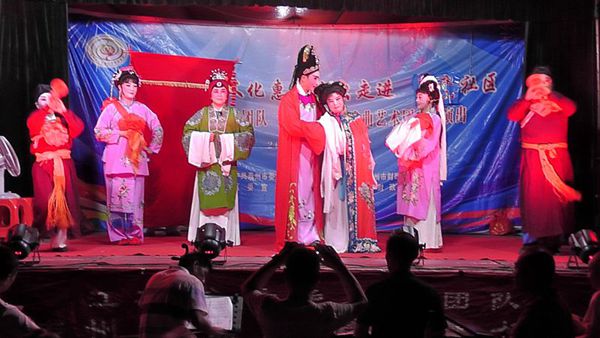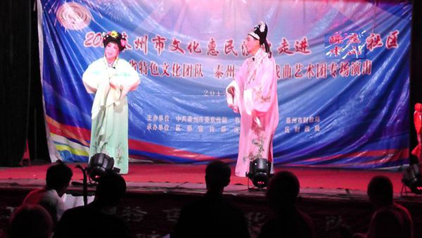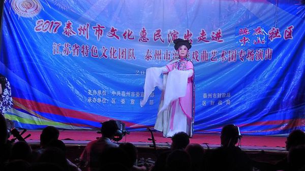 泰州市海陵区戏曲艺术团于2017年7月21日晚7点30分在医药高新区凤凰街道陈庄社区文化广场演出大型优秀传统扬剧——《逃婚的新娘》。我团参演人员25人,由于陈庄社区积极宣传,前来看戏的群众近200人,人民需要文化,文化需要人民,演出现场气氛热烈,观众掌声不断,演出圆满成功。这更加激起我们为老百姓排好戏、演好戏、唱好戏。把泰州市文化惠民演出活动锦上添花,更上一层楼。