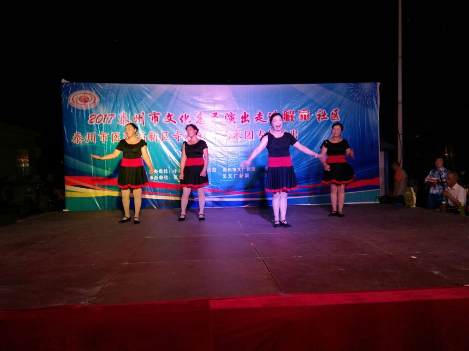 7月22日,寺巷彩虹艺术团文化惠民专场演出走进野徐镇解家社区。晚上7点半在解家社区广场准时开始,现场表演节目由《开门红》拉开序幕,紧接着是女生独唱、舞蹈、表演说唱、小品、戏曲选段等等,精彩的节目一个接一个,观众们掌声,喝彩声不断。寺巷彩虹艺术团演员们的精湛表演,让居民们陶醉在优美的旋律和欢快的舞步中,最后在《难忘今宵》中结束整场演出,得到了大家的一致好评!