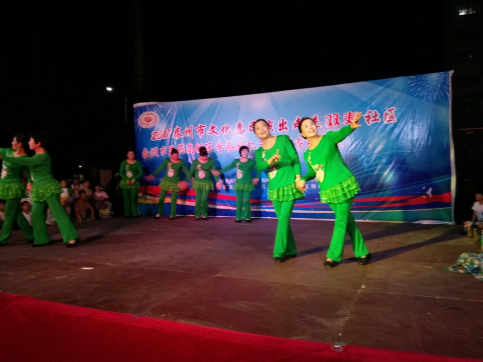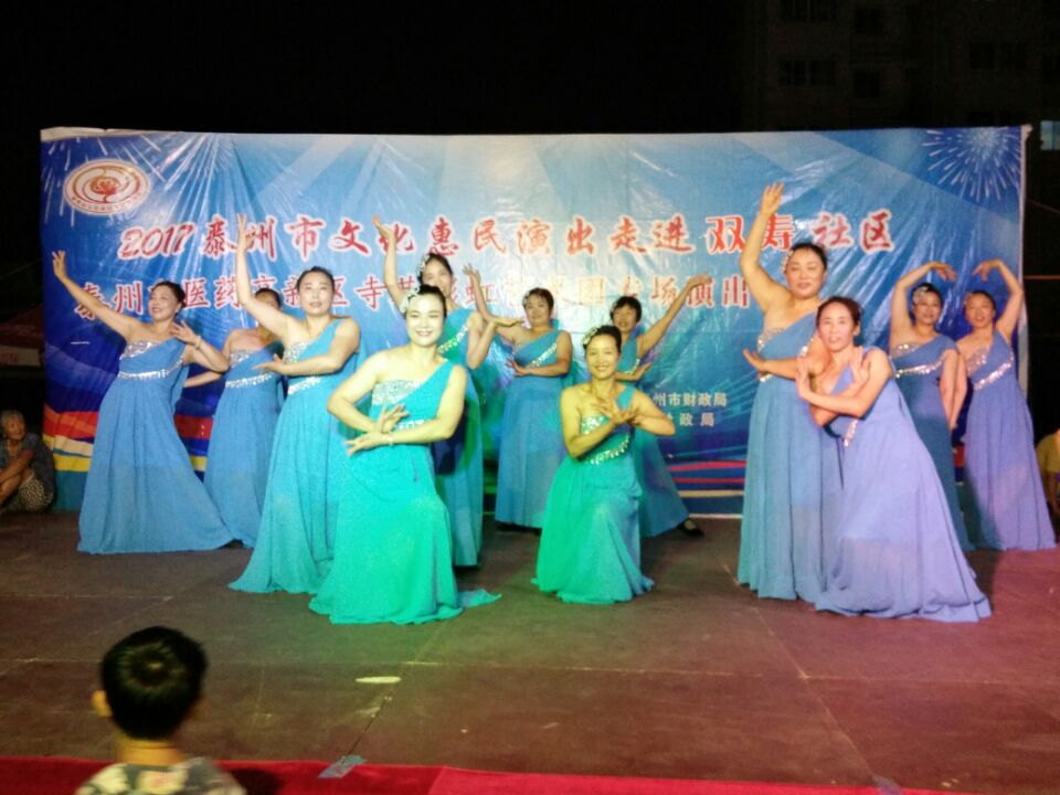 8月1日是建军节,寺巷彩虹艺术团文化惠民专场演出走进寺巷街道小寿社区。晚上7点半在小寿社区广场准时开始,现场表演节目由音乐鼓拉开序幕,紧接着是女生独唱、舞蹈《红色娘子军》《水乡泰州美》 、表演说唱、小品、戏曲选段等等,精彩的节目一个接一个,观众们掌声,喝彩声不断,寺巷彩虹艺术团演员们的精湛表演,让居民们陶醉在优美的旋律中和欢快的舞步中,最后在《难忘今宵》中结束这场演出,得到了大家的一致好评!