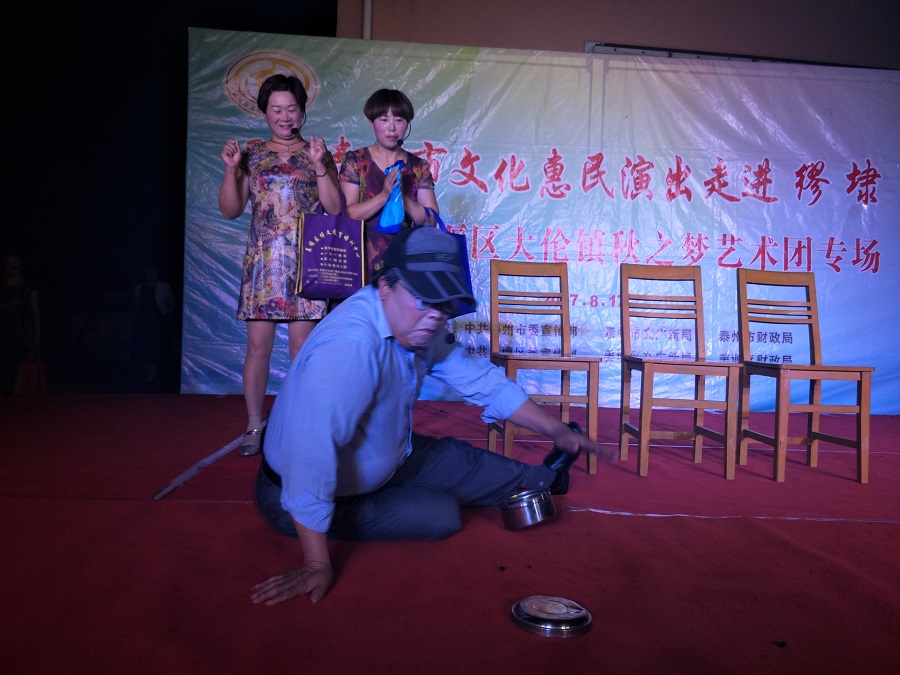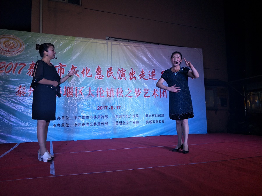 触摸时代的脉搏,呼应百姓的心声。8月17号晚姜堰区大伦镇秋之梦艺术团来到大伦镇缪埭村进行惠民演出,艺术团围绕文明城市创建工作的总体要求和基本内容,精心编排了十几个节目,演出在《红红火火大中华》热烈奔放的舞蹈中拉开帷幕,党要管党,从严治党,不忘初心,继续前行的《两学一做当标兵》快板。崇德向善,尊老爱幼的《有钱就是妈》。小品,歌蹈独奏,戏曲选段等,多种形式的演出,台上演员演得认真,台下观众看得津津有味,不时爆发出阵阵掌声,演出接近尾声,天上下起小雨,观众还是不愿离去,村干部及老百姓看后都说,秋之梦艺术团这台节目无论从思想性,艺术性,观赏性等方面都很突出,很精彩,看不够,欢迎艺术团要多来文化下乡。