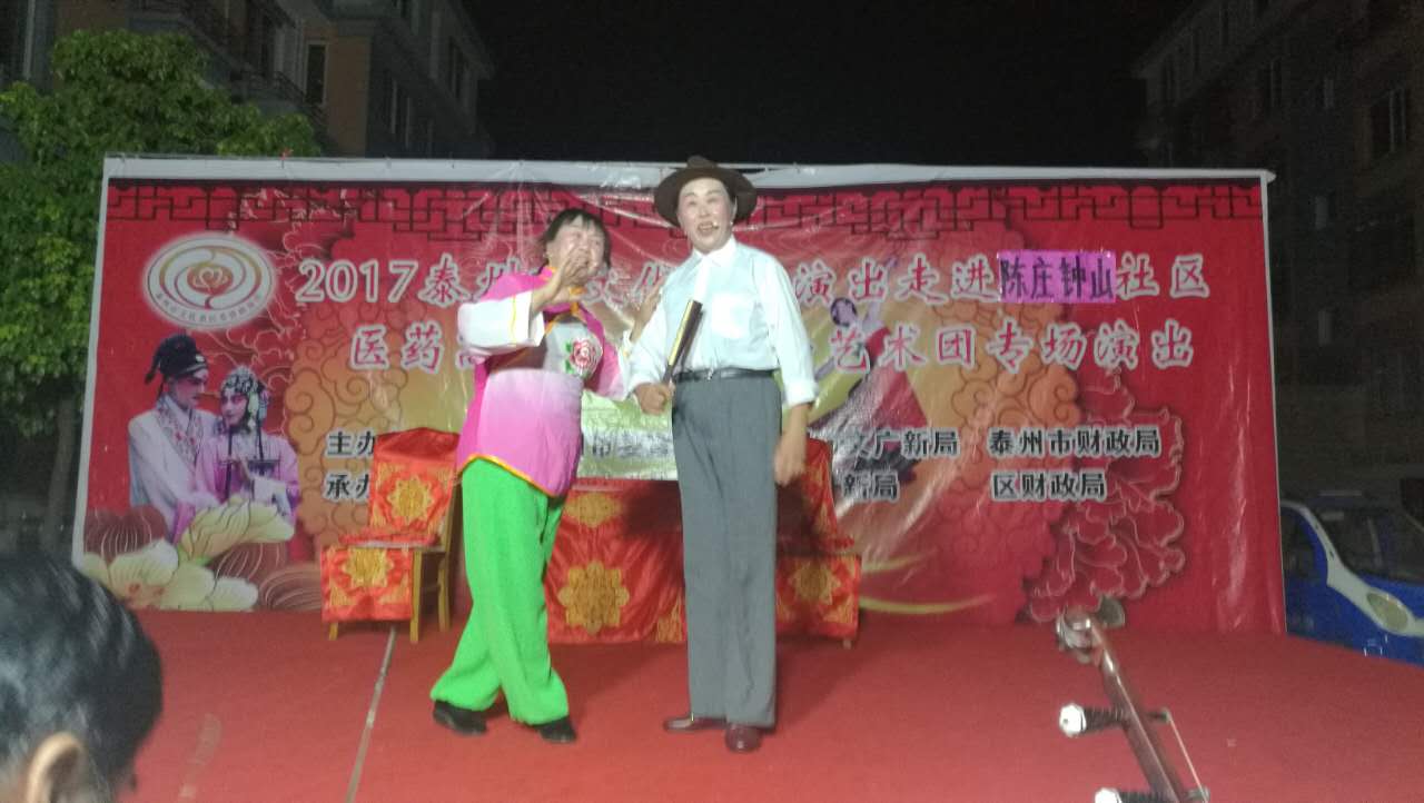 2017年8月15日晚,医药高新区凤凰戏曲艺术团文化惠民演出走进凤凰街道陈庄社区,在全体演出人员的精心准备下,给陈庄社区的居民带来了一场精彩的戏曲演出。演出受到了当地群众的集体好评,演出过程中掌声不断,欢笑不断,当地群众还要求我们加演节目,团队也满足了群众的需求。