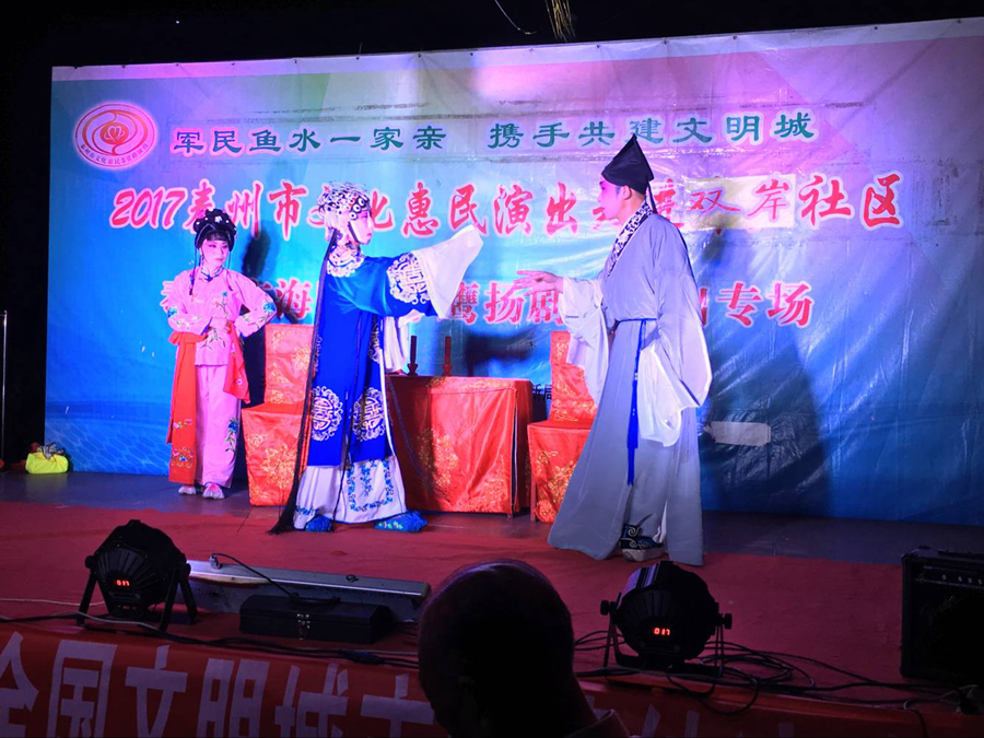 2017泰州市文化惠民演出走进海陵区苏陈镇双岸社区,海陵区小鹰扬剧团专场演出,2017年8月11日在海陵区苏陈镇双岸文化广场成功举办。本场演出剧目为传统扬剧整本戏《珍珠塔》,演到精彩之处观众不时暴以热烈的掌声。演出很成功!感谢社区领导提供全方位的服务!