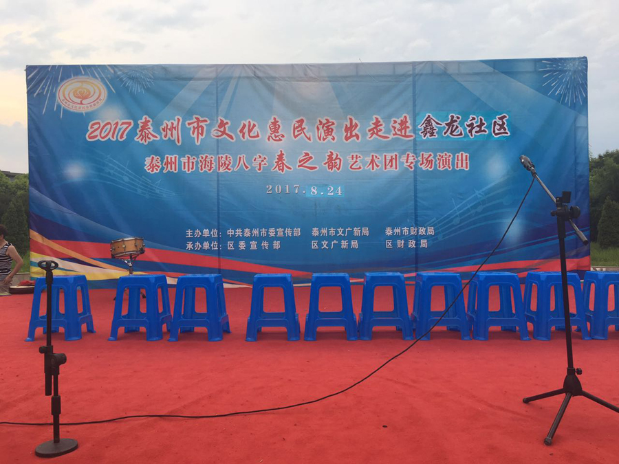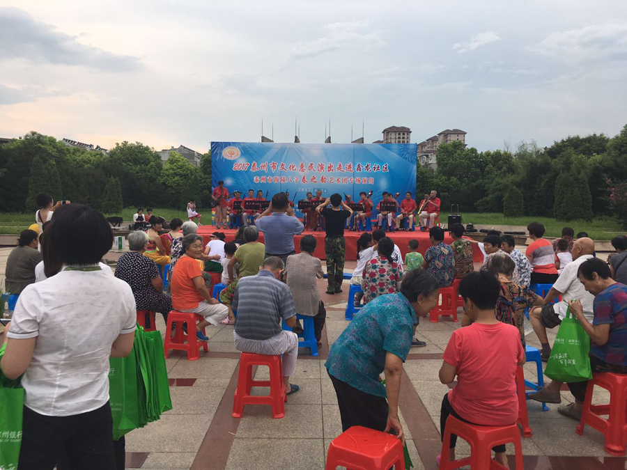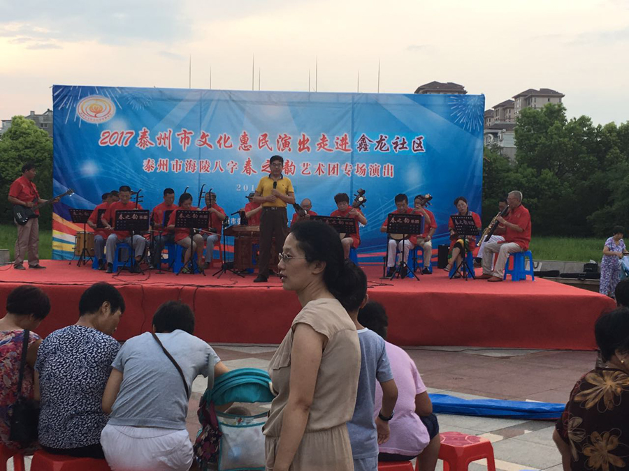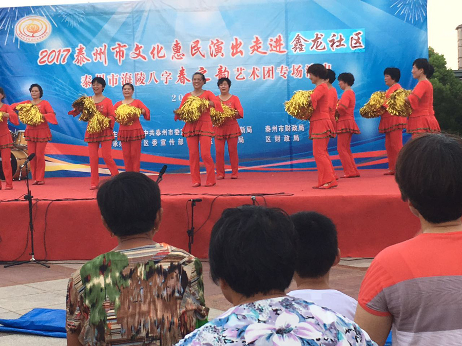 演出时间:2017年8月24日下午4:00 演出地点:海陵区城南街道鑫龙社区广场 演出单位:海陵八字春之韵艺术中心