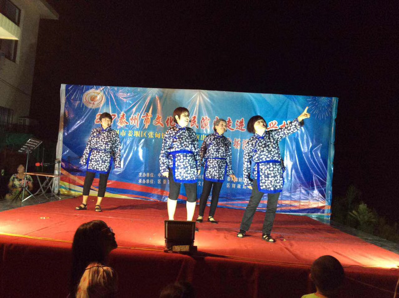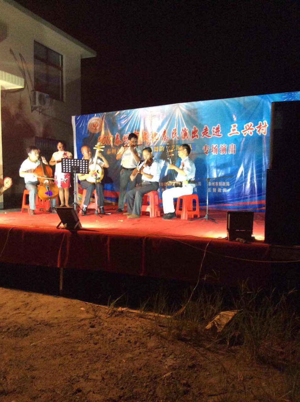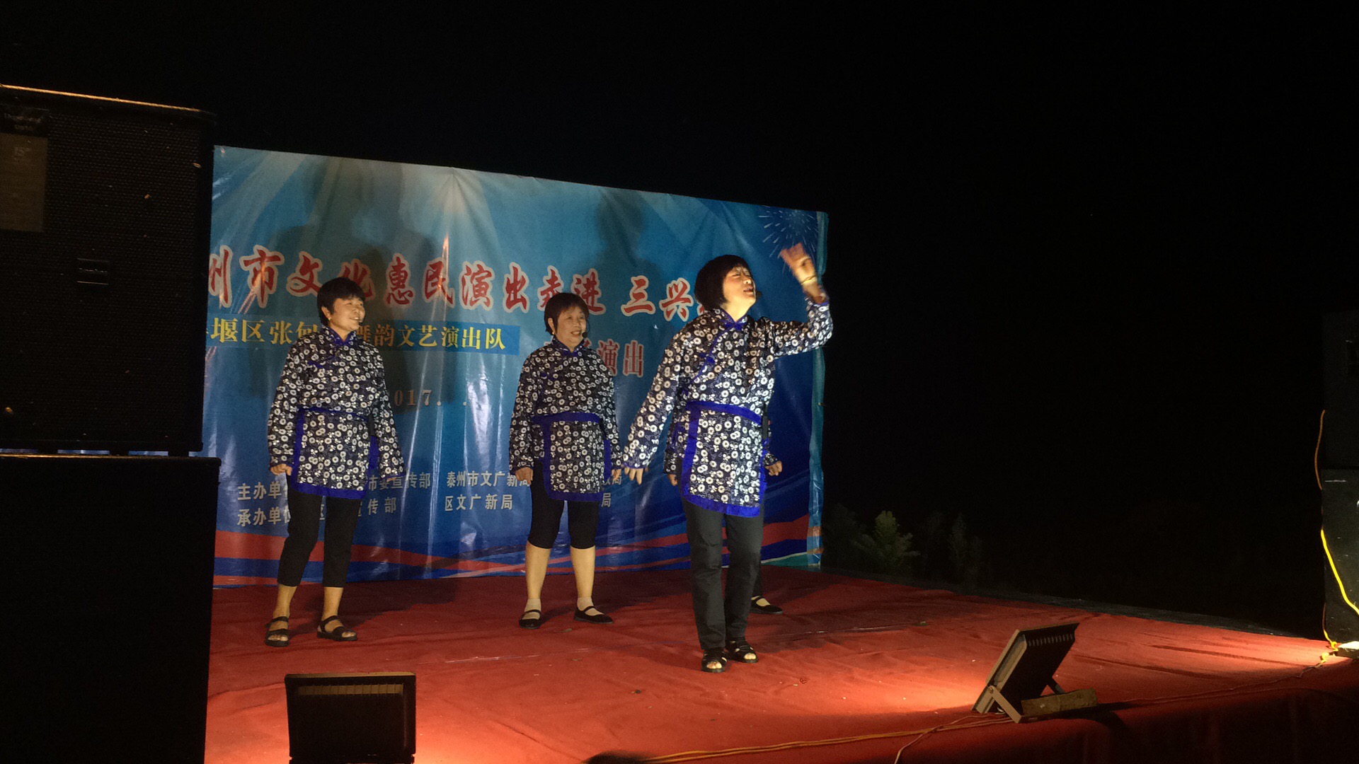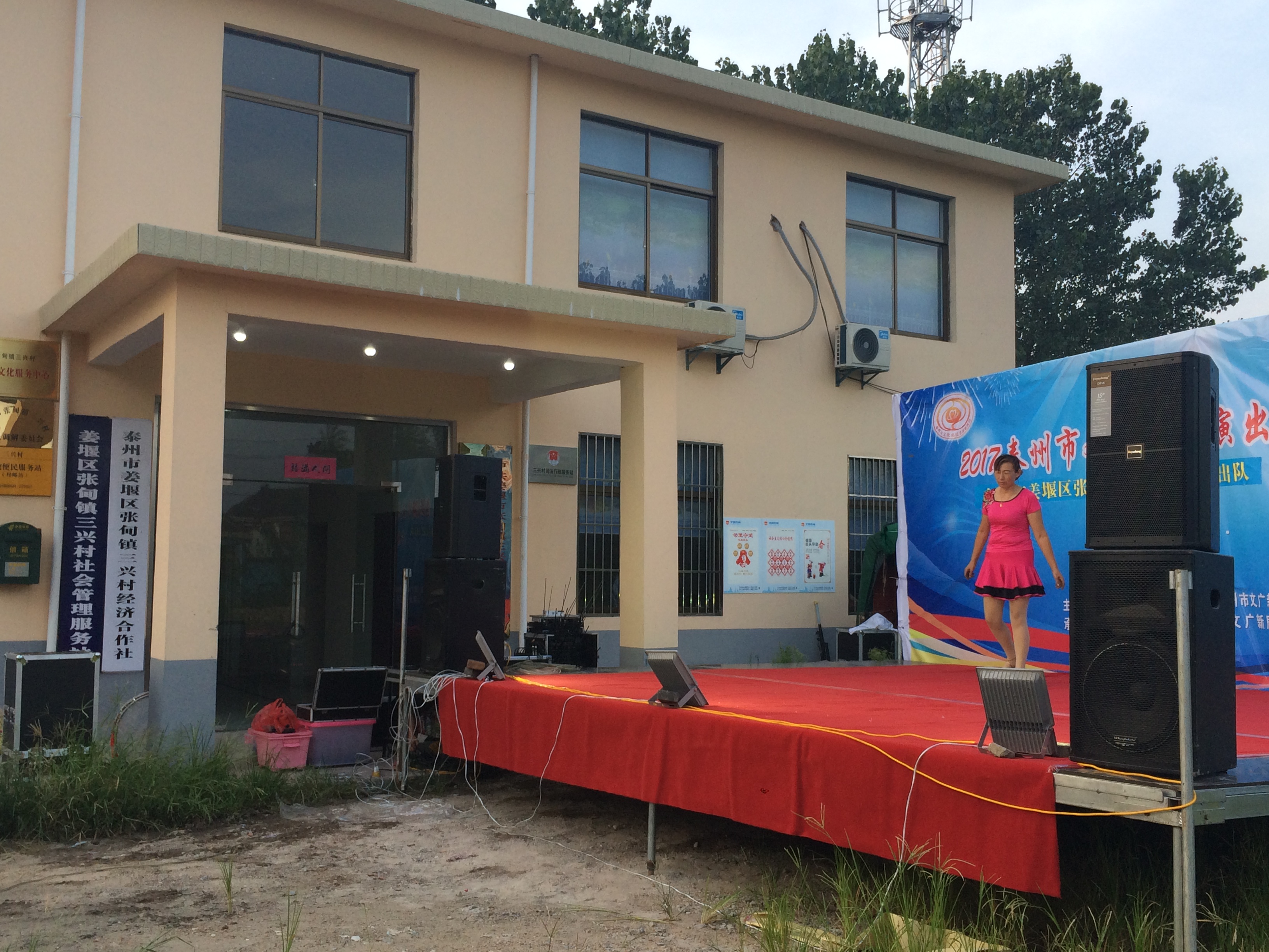2017年8.28日晚在姜堰区张甸镇三兴村演出,演出地点在三兴村村部,虽然村部是才建起来的,门口长了一地的草,但是村民朋友们都早早的搬着凳子坐在周围的路旁等候观看,大家对于演出的节目表示很好,特别是小品《有钱就是妈》对于农村的一些媳妇有很好的教育意义,让大家知道要孝敬长辈,不管长辈有钱没钱都要保持一样的心态去对待他(她)们,节目中的媳妇把角色的扮演的很到位,有钱和没钱的前后对比相差很大,把现场的气氛一波波带向高潮。