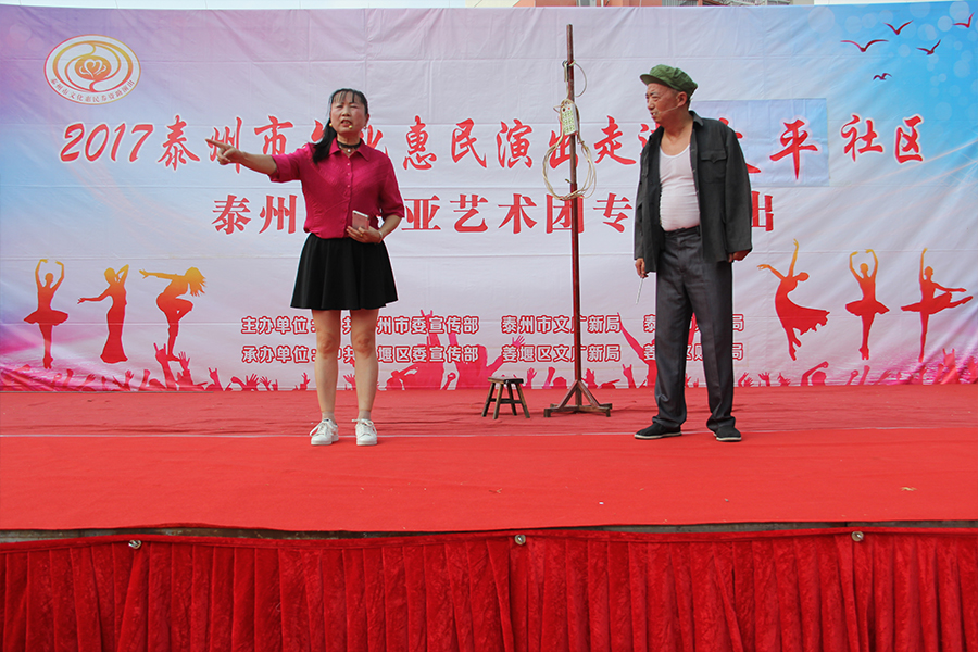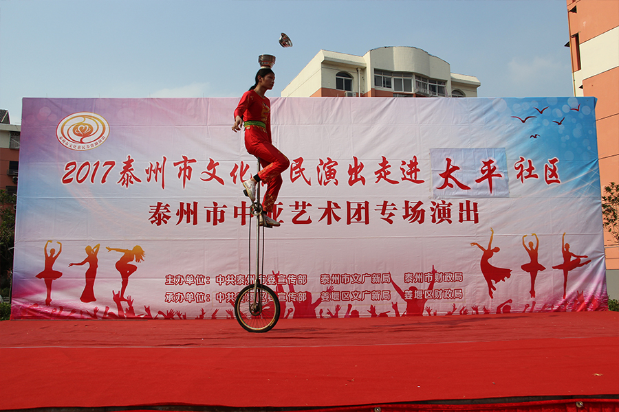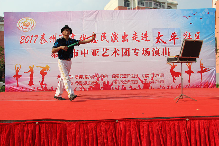 泰州中亚艺术团于2017年8月27日下午14:30走进罗塘街道太平社区进行文化惠民演出。演出在观众的热烈欢呼中拉开了帷幕,演出形式多样、有舞蹈,独唱,魔术,方言韵白,方言小品,杂技、黄梅戏等精彩片段,演出内容丰富,节目形式多样,现场气氛热烈,观众掌声不断,活动结束后,社区民众对惠民演出给予了很好的评价和赞赏。