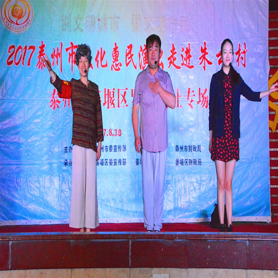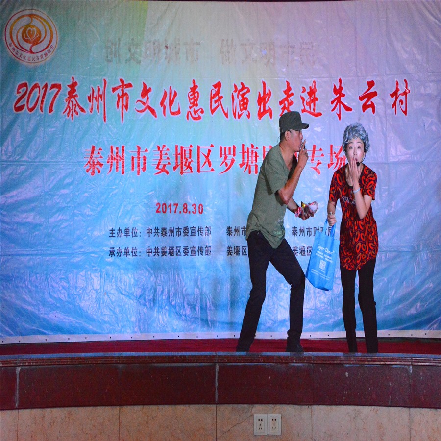8月30日,姜堰区罗塘剧社应罗塘街道朱云村邀请,2017年泰州市文化惠民券专场演出于当晚6点45分在朱云村百姓大舞台上演。为适应观众不同层次的文化欣赏需求,姜堰区罗塘剧社精心策划了16个丰富多彩的文艺节目,随着欢快喜庆的音乐响起,舞蹈《张灯结彩》拉开了演出序幕,当晚演出不仅有激情奔放的民歌与民舞,而且有耳熟能详的戏曲与小品,压台小戏淮剧《父还子债》,该剧是根据笫五届感动泰州·美德善行十大人物,姜堰区张甸镇农民李开诚为死去的儿子偿还欠债的真实故事创作而编导,剧情生动感人,演员入情入戏,唱腔催人泪下,整台演出效果,弘扬社会正气,倡导诚实守信,气氛热烈,掌声不断,赢得了广大观众的一致好评。当天晚上演出时长120分钟,观众达到200多人,优美而精彩的表演,给朱云村村民送去一份丰盛的文化大餐。