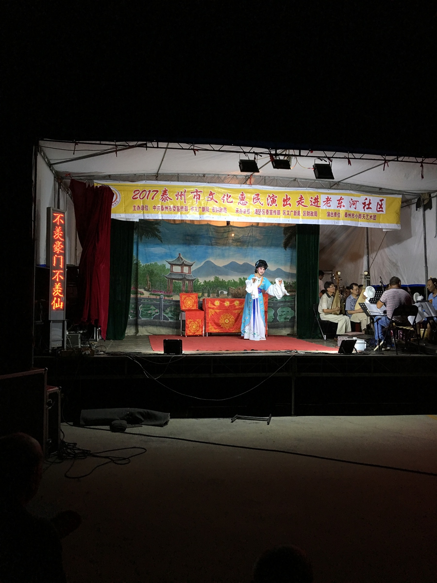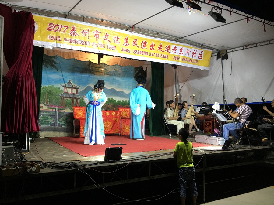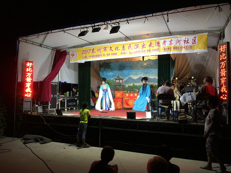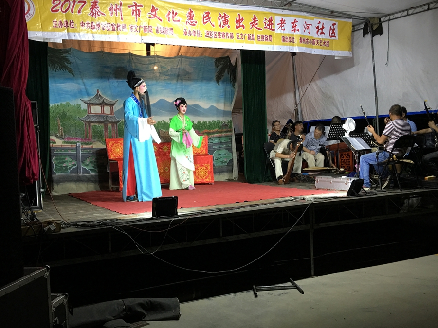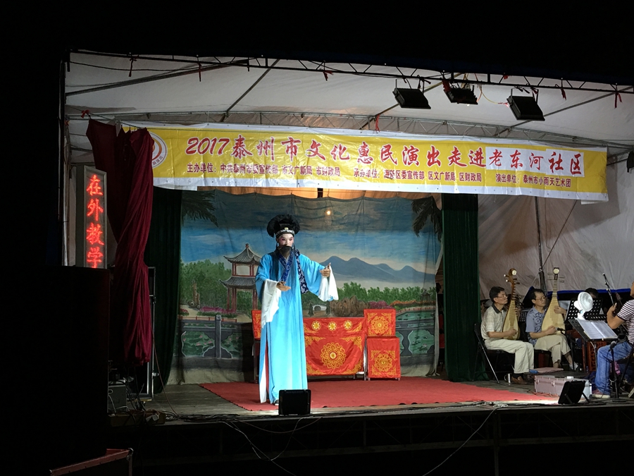 2017年8月28日晚,应海陵区城东街道老东河社区邀请,小雨天艺术团走进老东河社区广场,为基层社区居民演出了一场经典传统扬剧全本戏《分裙记》。为了保证社区群众的欣赏效果,按社区领导安排,艺术团动用了戏曲演出专用舞台,下午5点,社区主要领导和小雨天艺术团就来到演出现场,为晚上的演出做好了充分准备。节目晚上正点准时开演,现场200多的社区观众看的是兴致勃勃,高潮之时的广场更是掌声雷动,很多观众都说,看到这样的正规化演出,才是感觉到了真正的文化惠民。因现场社区观众的盛情,正本演出后还添续了折子戏段加唱,整场演出持续了近3小时之多...
