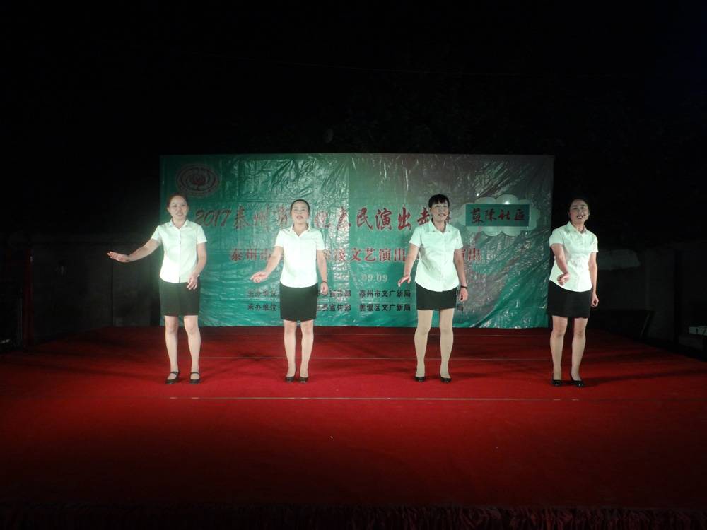 2017年9月9日晚,我们淤溪文艺演出队应邀走进海陵区苏陈镇苏陈社区,为这里的人民献上了一台精彩的文艺晚会,节目内容戏曲,歌舞,小品,表演唱,器乐小合奏,特技表演等,演出生动活泼,精彩纷呈,观众掌声不断,特别是小品《争婆婆》观众笑得合不拢嘴,掌声欢呼声响成一片,整台晚会两个多小时不知不觉就过去了,受