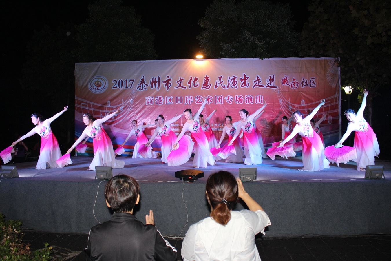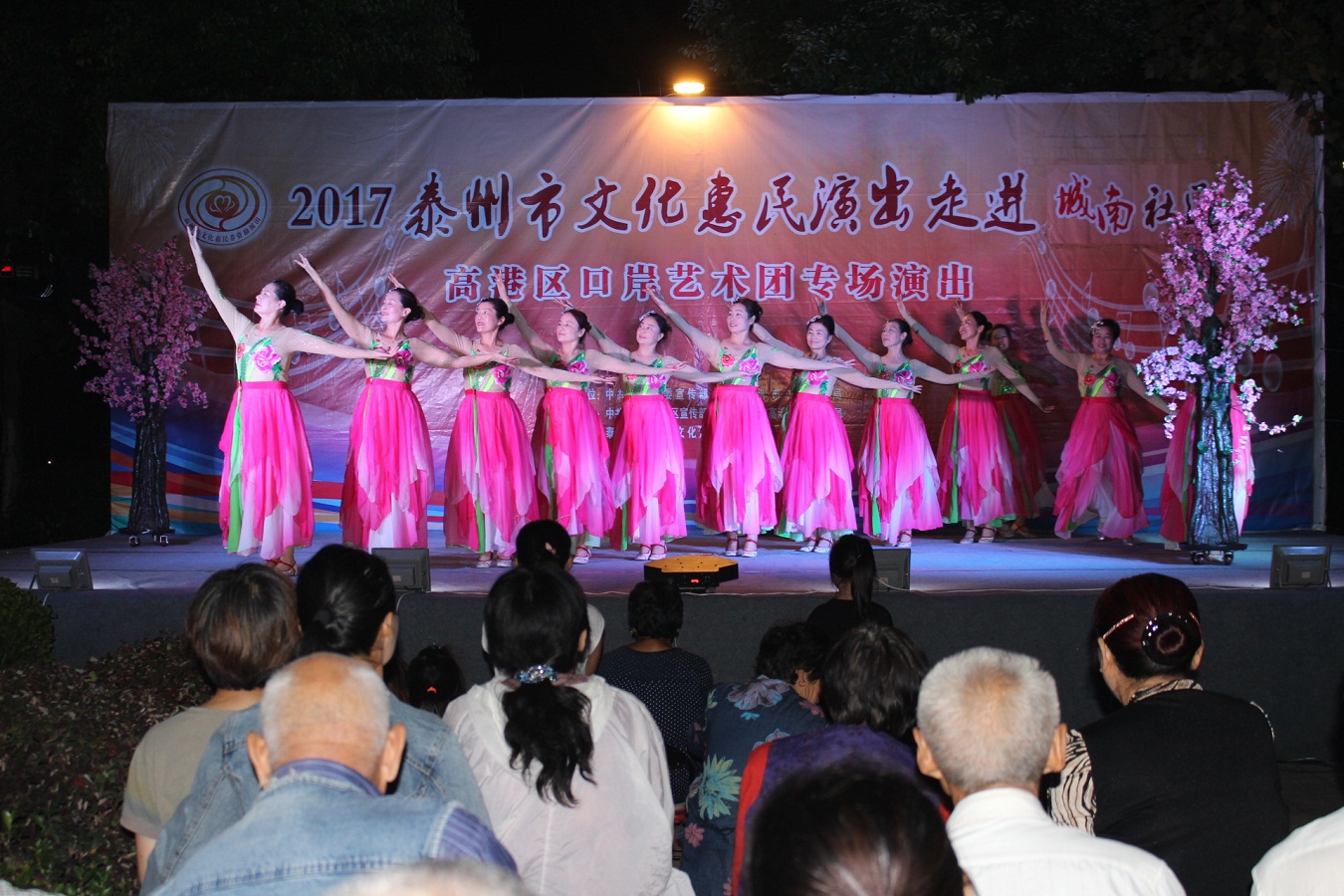 为进一步丰富社区居民的业余文化生活,通过文艺表演的形式喜迎党的十九大胜利召开,9月20日晚,在龙湖美景,城南社区特邀高港区口岸艺术团,为村民们带来一场多姿多彩的文化惠民专场文艺演出,深受现场800多名观众的热烈欢迎。
