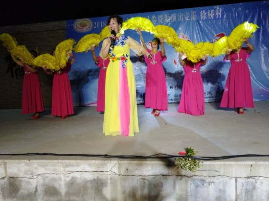 在此处输入内容容泰州市高港区老年艺术团于2018年6月24日晚上走进徐桥村进行文化惠民演出。演出在太阳出来喜洋洋这美妙的喜悦的音乐声中拉开了帷幕采用群众喜闻乐见的表演形式进行,如舞蹈.说唱.小品.歌曲.戏曲.笛子.二胡独奏等等.满足爱好者的口味,让居民们听得酣畅淋漓.形式多样,内容丰富多彩的节目吸引了社区八百多名群众来观看,赢得了观众的阵阵掌声和笑声,受到广大干部群众的一致好评.