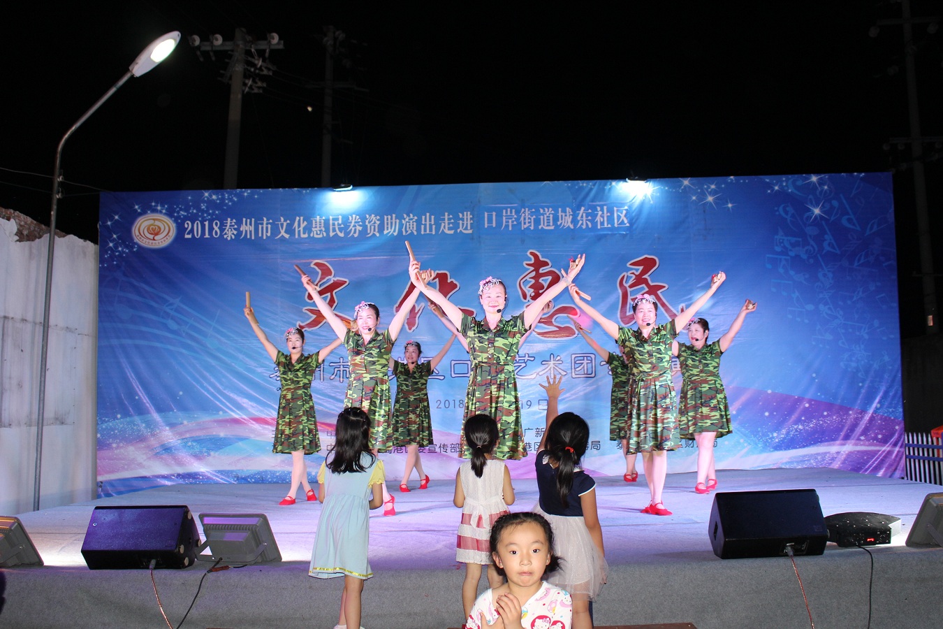 2018年7月19日,由口岸街道城东社区邀请,高港区口岸艺术团惠民演出在我们沈岱体育广场拉开序幕,让社区老百姓在三伏天里能看到精彩的文化大餐。