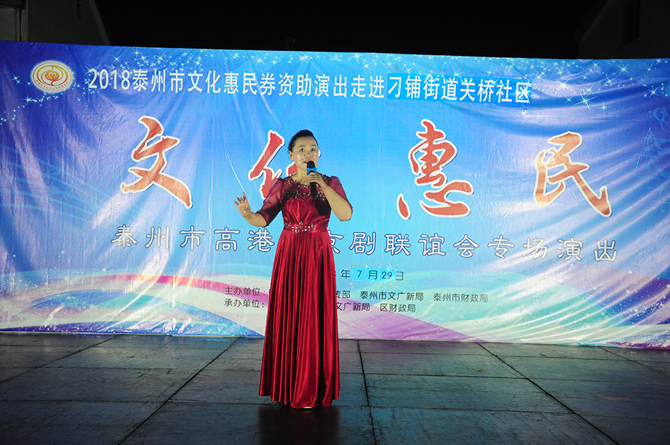 2018年7月29日晚7:30-9:30,高港区京剧联谊会走进刁铺街道关桥社区,在社区广场举办了一场文化惠民专场演出。