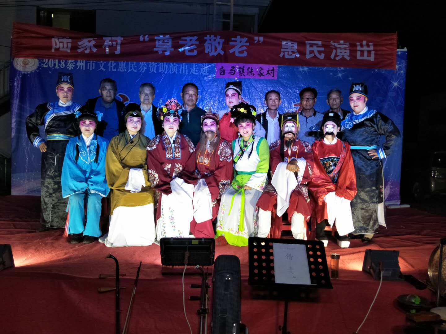 为了丰富白马陆家群众的精神文化生活,实现文化惠民,9月10日晚七点半,泰州市海陵区燕子艺术团来到陆家村活动广场为居民奉献了一场精彩的大型古装戏扬剧《借妻》演出。