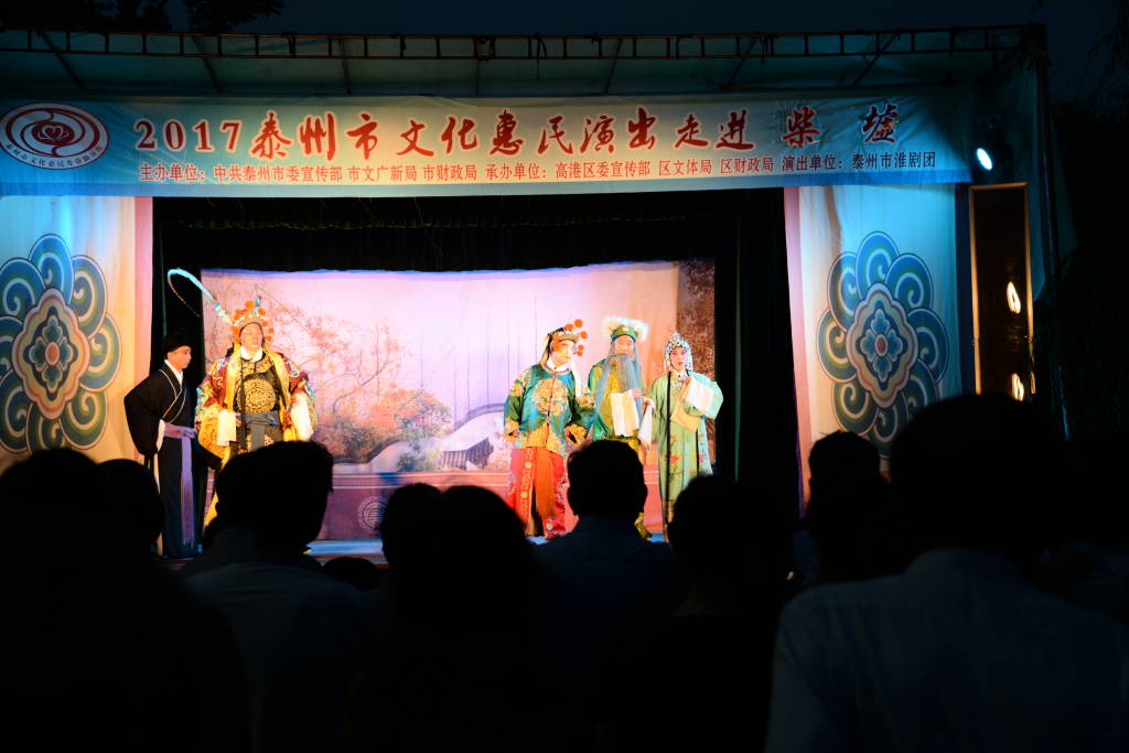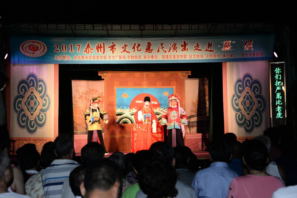 6月19日晚泰州市淮剧团应高港区口岸街道柴墟社区的邀请,给广大的社区居民带来了一台大型传统优秀淮剧《唐知县审诰命》,该剧主要反映剧中人物唐成虽官卑职小,但是不畏强权、秉公办案、敢于为真理而斗争的事件;而剧中人物唐成一句:“当官不为民作主、不如回家卖红薯”的台词也成了我们当今社会各个阶层领导人的座右铭;两个半小时的演出,全团演职人员精堪的演技赢得了全场数千观众的阵阵掌声……