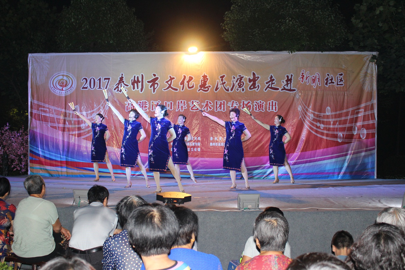 2017年6月24日晚7点半,高港区口岸艺术团走进了美丽的口岸街道新明社区,上演了一场形式多样内容丰富多彩的文化盛宴,赢得社区1000多名现场观众的广泛赞誉。